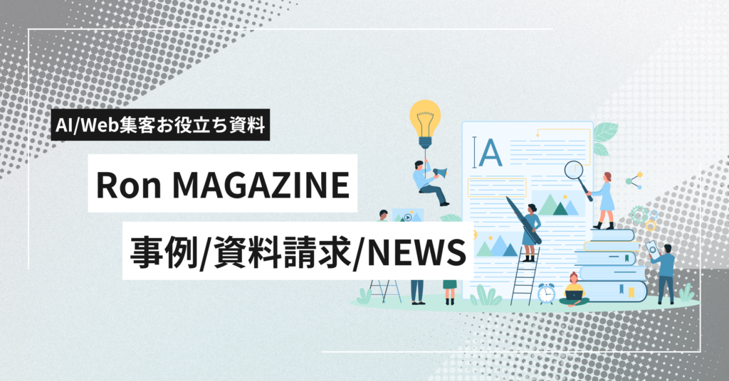 Ron(ロン)のコンサルタントがまとめる「AI/WEB集客お役立ち情報」をコンテンツにしました。 いつでも読める”記事コラム”を用意しています。AI実装による効率化やWeb集客の課題に合わせた情報をご活用ください。